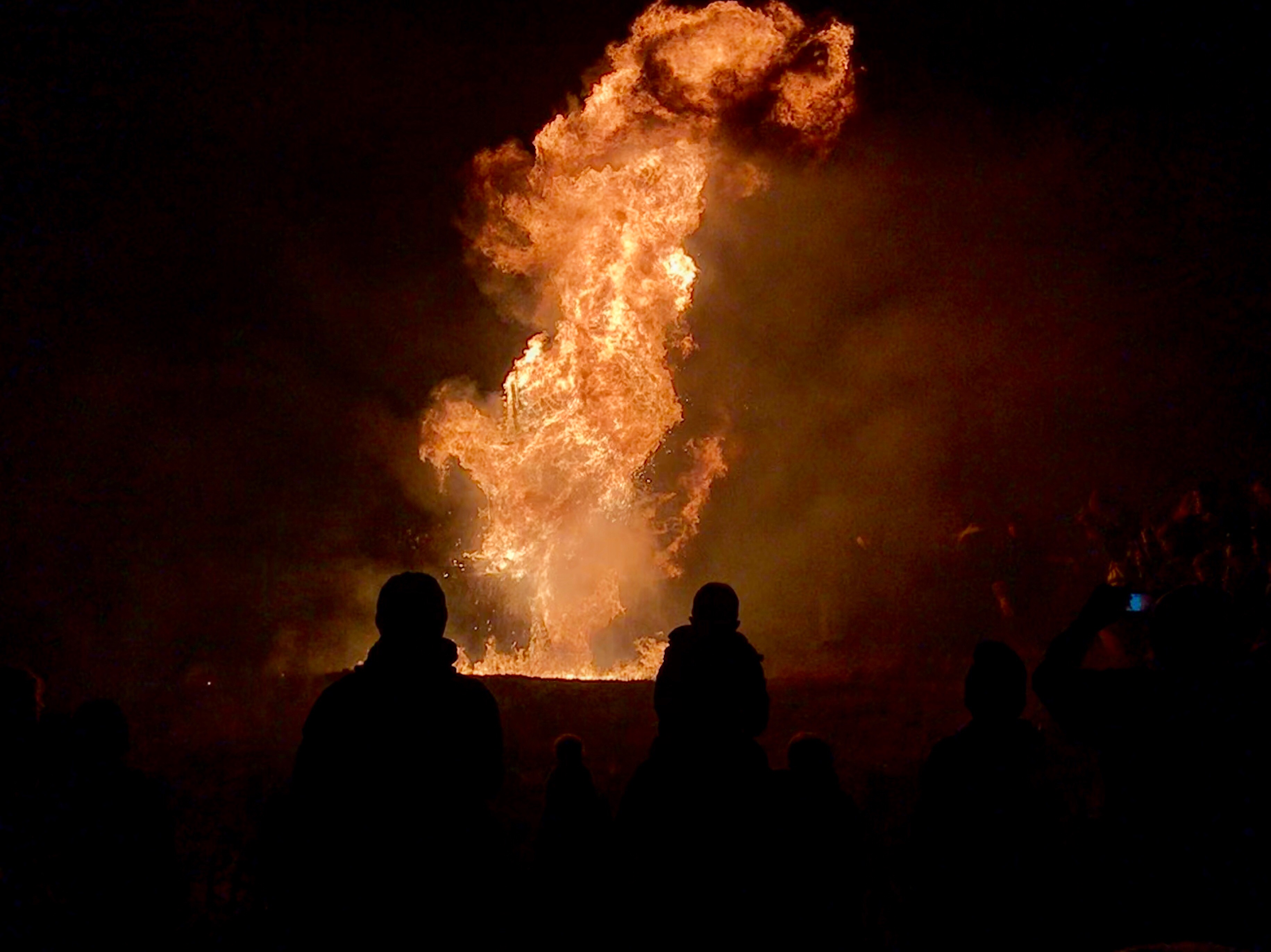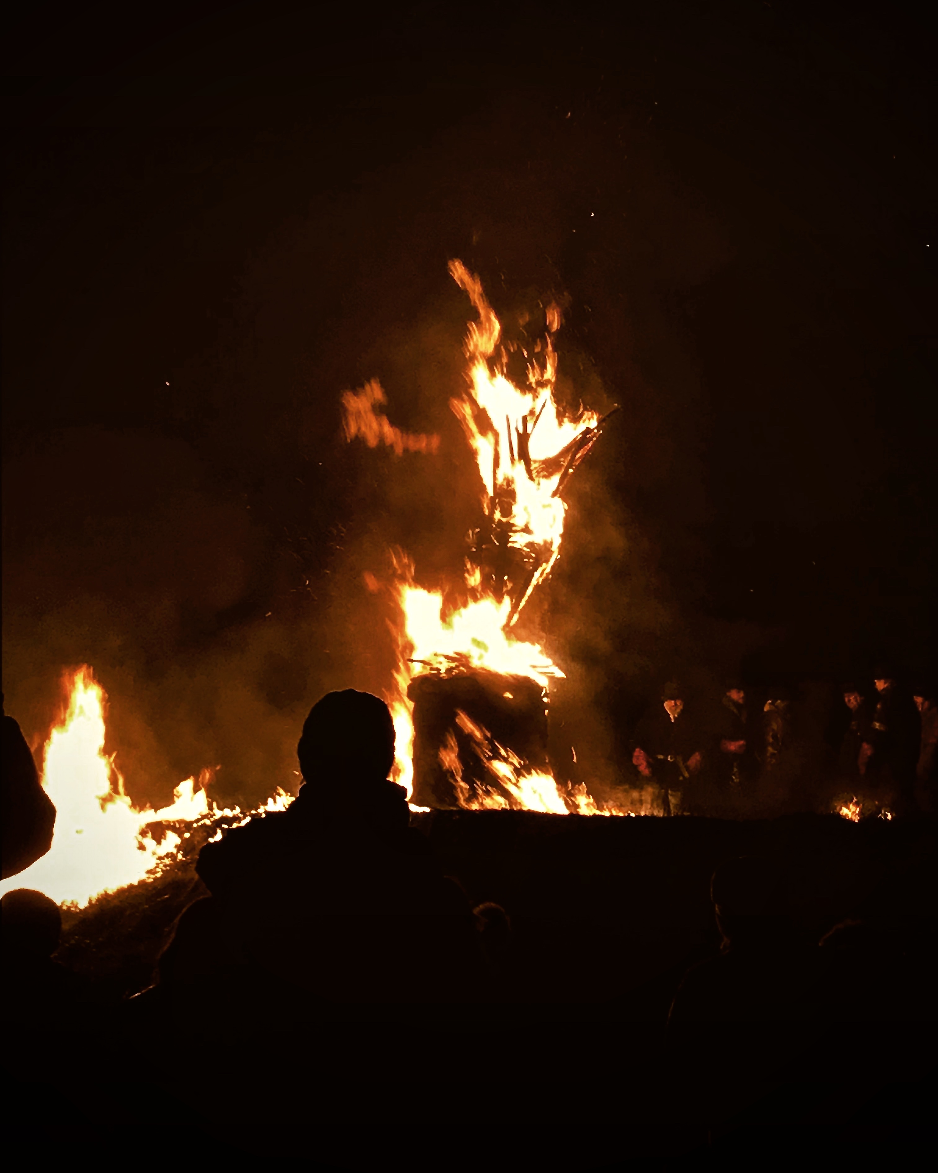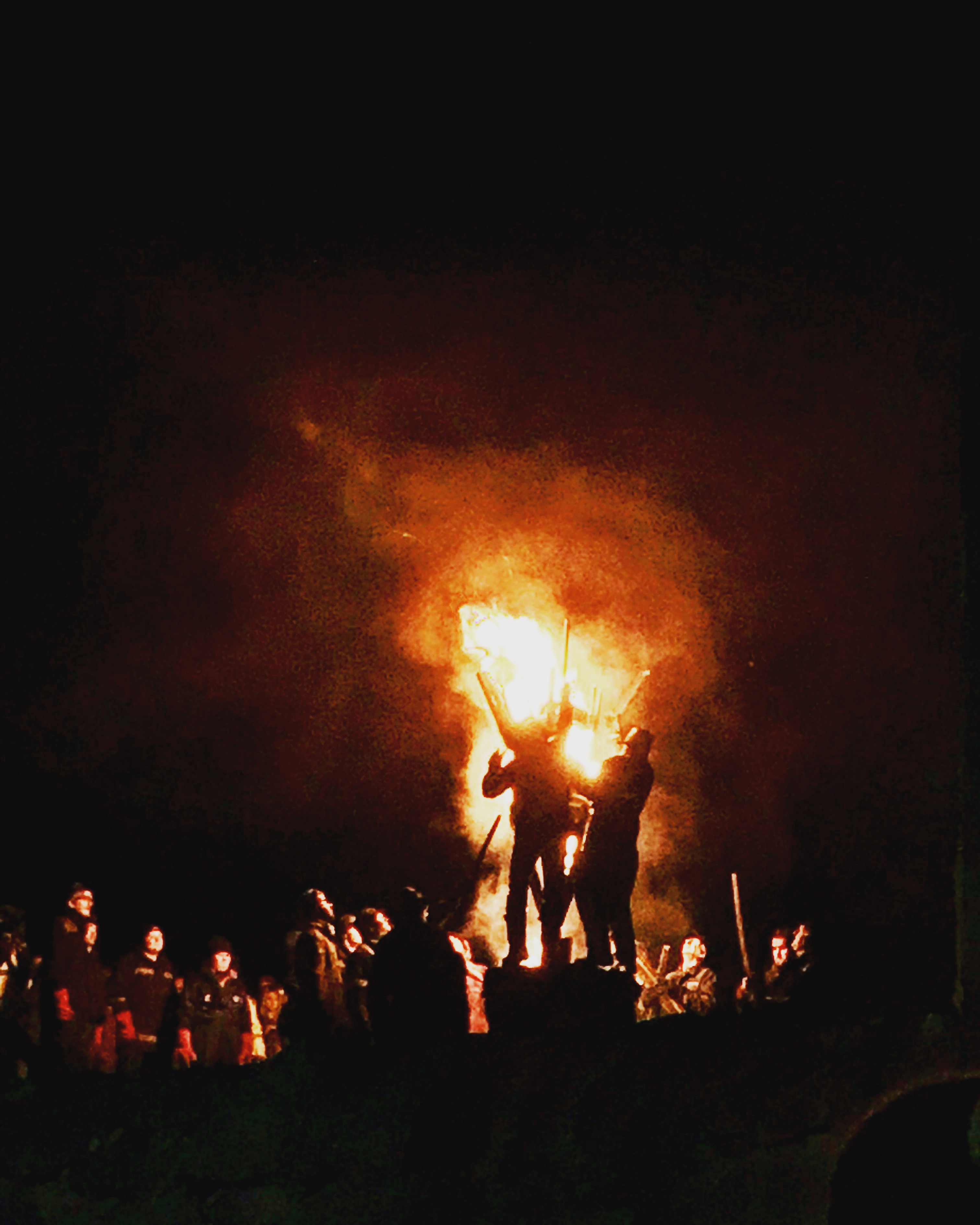 At the start of the New Year, I had the pleasure of attending a traditional fire ritual known as ‘The Burning of the Clavie’. The burning is an ancient Scottish custom still observed in the village of Burghead, a fishing village on the Moray Firth. The clavie is a collection of casks split in two, and lit as a bonfire in the evening of 11th January, i.e. New Year’s Eve (in Scotland, Hogmanay) by the Julian Calendar. One of these casks is joined together again by a huge nail (Latin: clavis). The event – which dates back to at least the 1750s – sees the clavie, which is a half-cask filled with wood shavings and tar, set alight. The elected Clavie King and his helpers parade the burning barrel through the streets before it becomes a fire beacon on a nearby hill. Getting a piece of the clavie is said to bring good luck for the year. The flaming clavie is carried through the village and finally to a headland upon which stands the ruins of an altar, called the Doorie. As the burning barrel falls to pieces, those assembled seek to get a lighted piece. This is placed on their home hearth. It is said that the charcoal of the clavie when put up the chimneys of people’s homes, wards off spirits and witches. The tradition of fire festivals date back to ancient pagan rituals that were practised in many places across Scotland. The Burning of the Clavie has its roots in these rituals. An eighteenth-century century law was passed that outlawed the practice, calling it ‘superstitious, idolatrous and sinfule, an abominable heathenish practice,’ – the villagers continue to hold their festivities regardless.