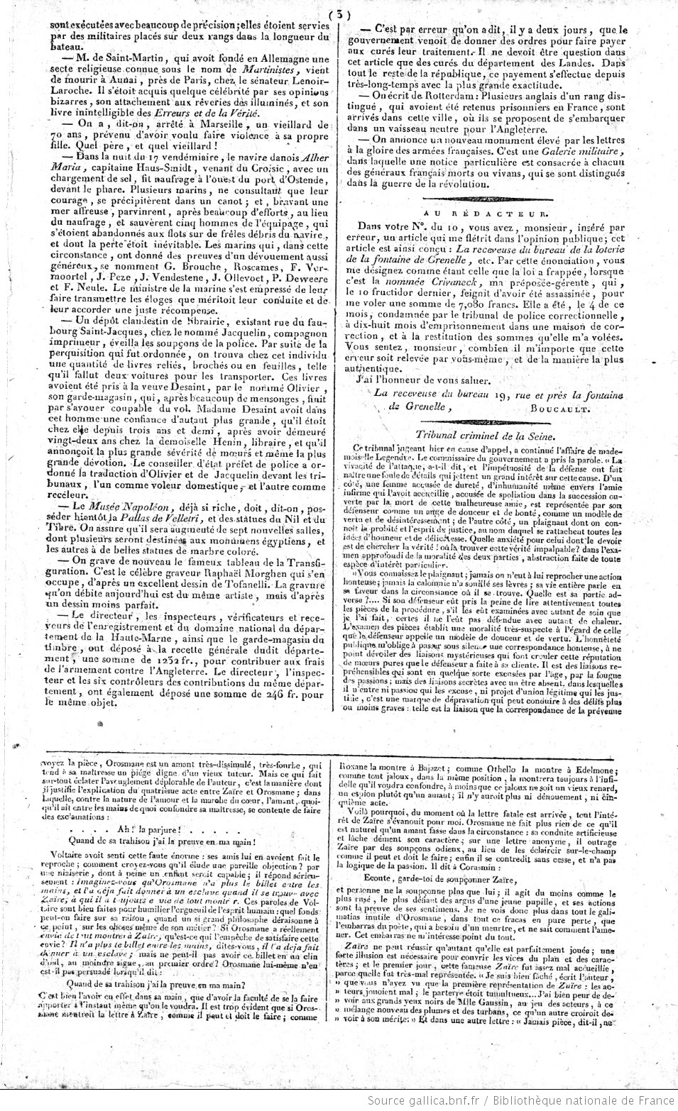 The text below was published in the broadsheet ‘Journal des débats‘ on November 6, 1803.
